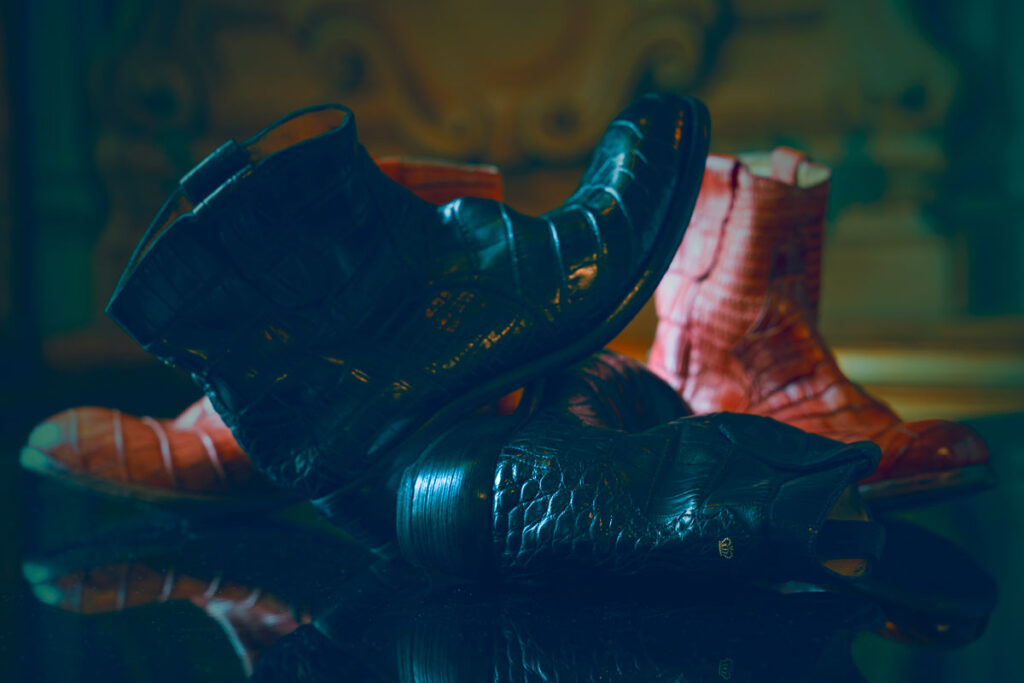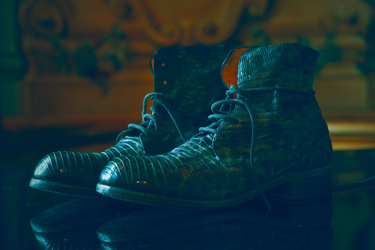 An Eco-Project of avant-garde design: new visual paradigms, new project approach methodologies, a new creative light. Distinctive parameters that shape the entirety of the Collection: leather and hide, hide and leather, top-quality materials: deerskin, crocodile, horsehide, deconstructed and rendered vintage through careful intensive washes. Goodyear and hybrid Ideal Rapid constructions. Leather – Hide and Form, aesthetic essence, absolute golden value, the only elements that make a Pair of Shoes a precious, unique, extraordinary, perfect artifact… a little snobbish!